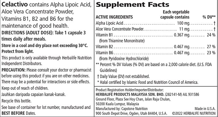 Celactivo is a health supplement formulated with alpha lipoic acid and B vitamins to support normal metabolic processes and provide antioxidant protection to the body. It is added with aloe vera to enhance the body’s absorption of micronutrients.