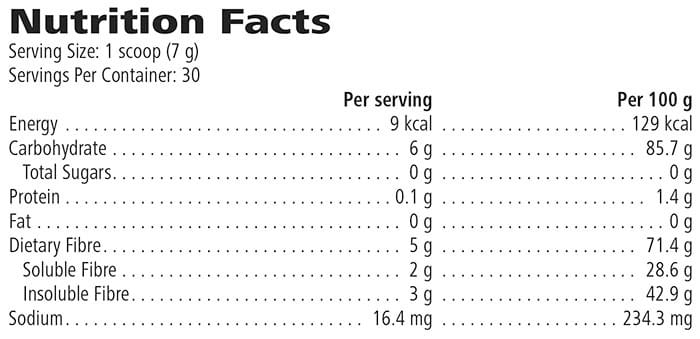 Mix 1 scoop of powder with 240ml of water or to taste. Take 1 to 2 times daily as part of your dietary fibre source.